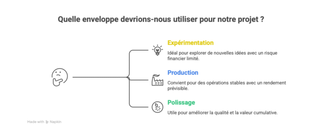Chaque enveloppe reçoit un pourcentage fixe du budget global, comme une bankroll ventilée par variantes de jeux. Cette segmentation évite l’écueil classique : tout miser sur un seul grand coup, ou diluer sans intention chaque minute et chaque pinceau.